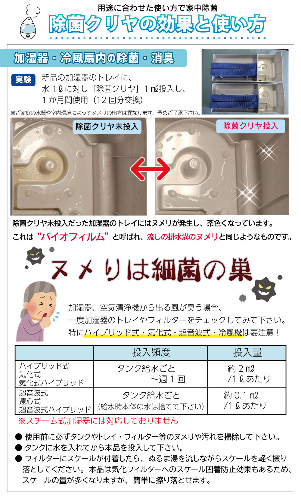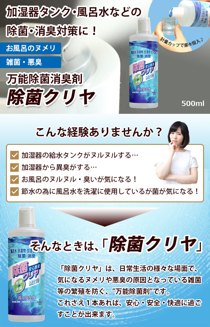 加湿器・風呂水などのヌメり、悪臭対策に!
