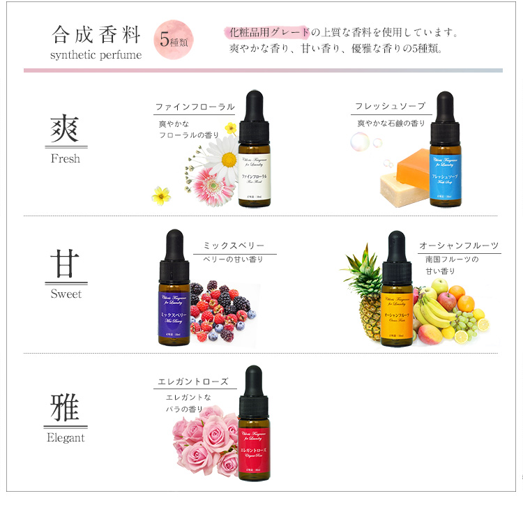 | 用 途 | 綿・麻・合成繊維の洗濯時の芳香用 |