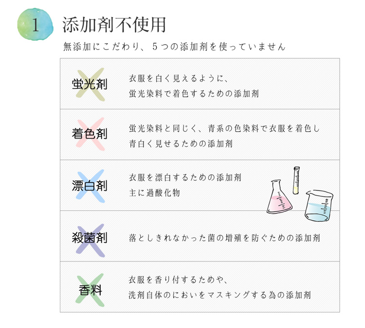 蛍光剤・着色剤・漂白剤・殺菌剤・香料などの添加剤不使用。